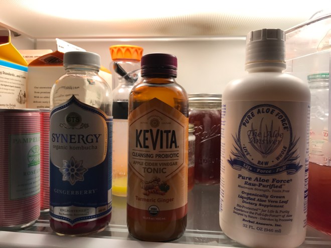 (1) Kombucha – I love the synergy ginger berry flavor. I take one sip in the am when I wake up and one before dinner. This is a healthy natural probiotic for digestive health.