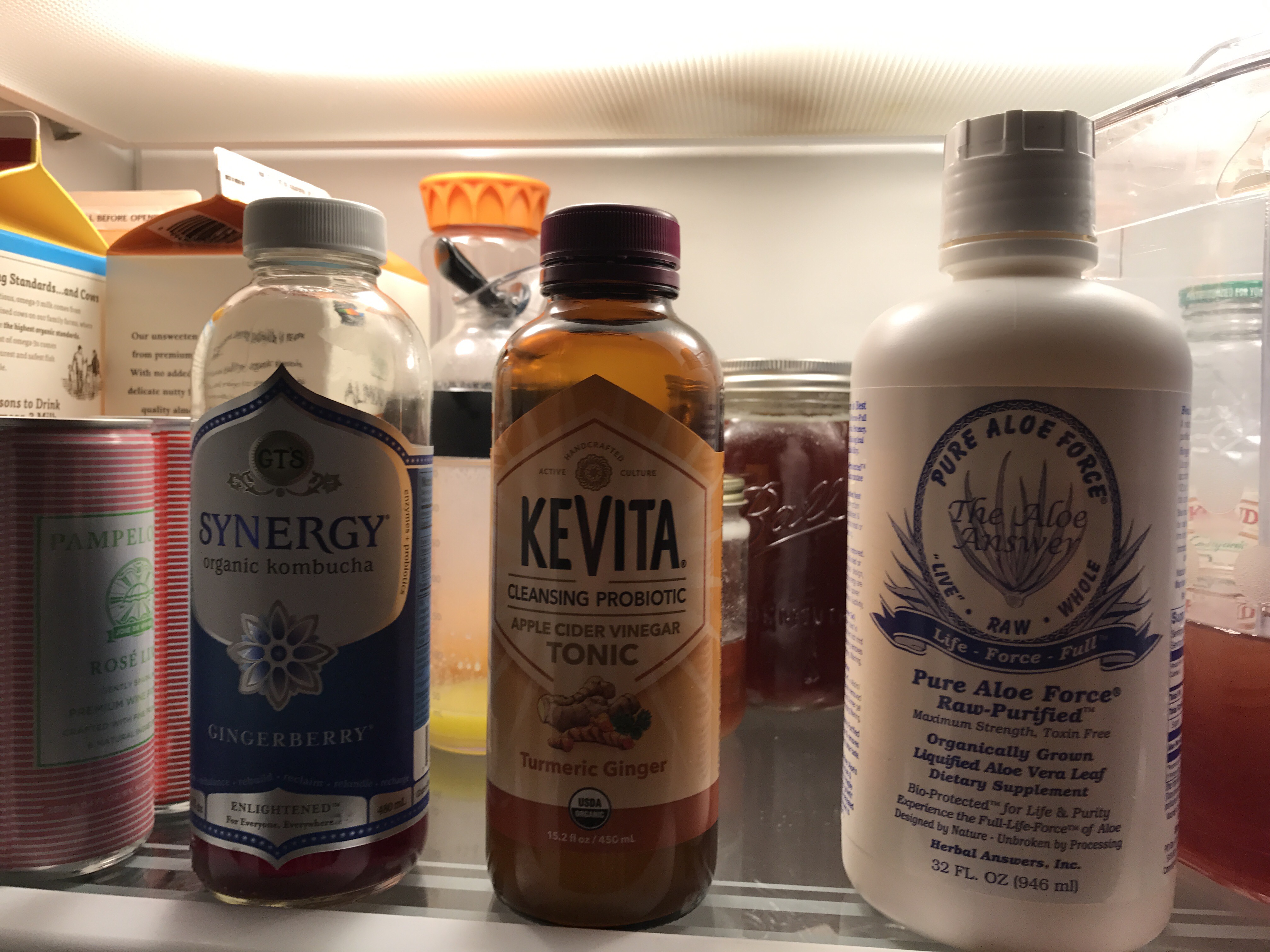 (2) Kevita – This is a great tonic although not always easy to handle. The apple cider vinegar tumeric and ginger with probiotic provide a super healthy shot. Normally I take one sip in the am